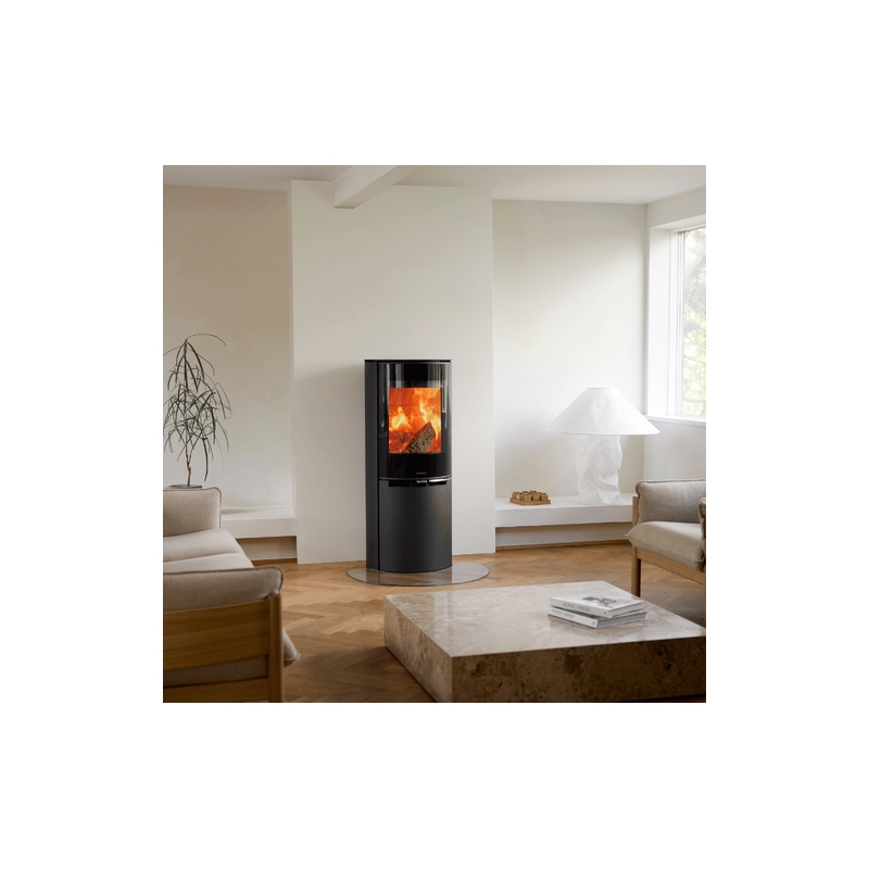 Med välvd front och utan sidoglas är Aduro 9.8 Lux perfekt för placering längs en vägg eller i ett hörn. Kaminen har också ett rymligt förvaringsutrymme med lucka. Den är dessutom utrustad med vår patenterade Aduro-tronic-automatik som automatiskt reglerar den primära lufttillförseln till kaminen. Lägg bara in torr ved i kaminen, tänd en brasa och aktivera automatiken – Aduro-tronic sköter resten.