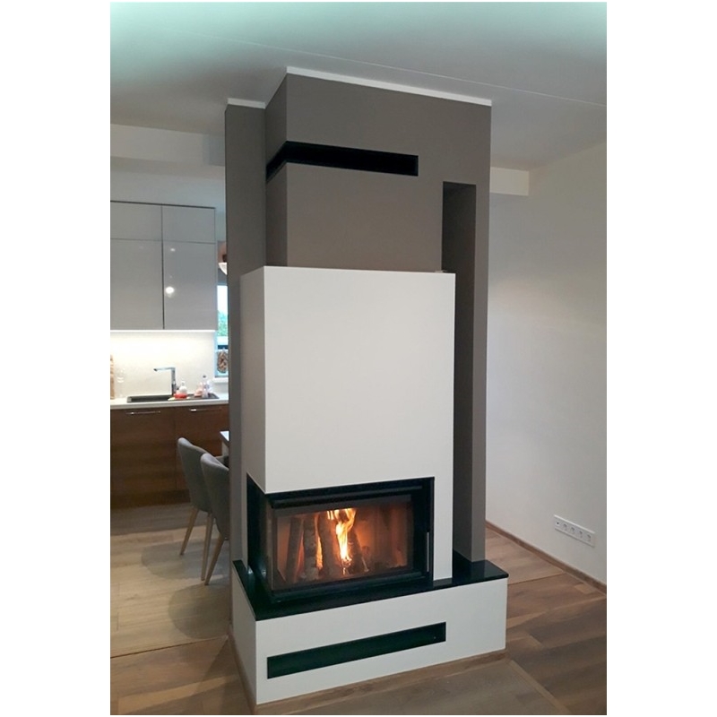 Förbränningskammaren är antingen fodrad med värmetåliga tegelstenar kallade IGNITON eller med svarta chamottetegel och är designad utan ugnsgaller. Insatsen kan dock utrustas med ett galler om kunden önskar det. HEAT-insatser är avsedda för konvektionsdrift. Det innovativa DOUBLE SPIN-systemet för rökgaser ökar effektiviteten och minskar miljöpåverkan från insatsen. Sekundärluftintag sköljer över glaset i dörren för att förhindra ansamling av avlagringar. Primär- och sekundärluftintagen regleras med ett enda reglage.