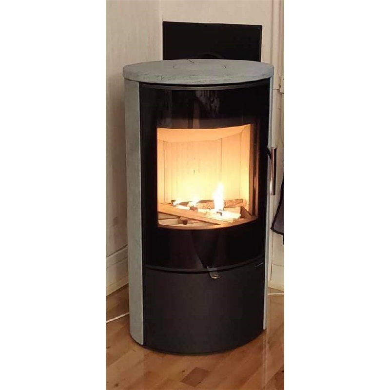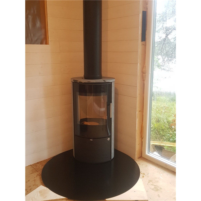 Laredo är en modern kamin till rätt pris. Den svängda dörrformen med en rejäl utanpåliggande glasyta ger ett stilfullt intryck och en generös insyn till elden. Brännkammaren är välisolerad med slittåligt eldfast tegel. Utförandet på den stora bilden är med stensidor.